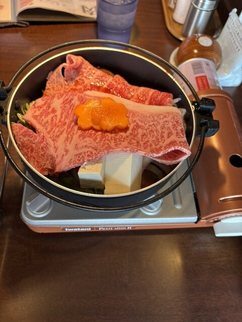 お店は[一升びん]で10食限定の(すき焼きランチ)をいただきました。柔らかいお肉にくどくない割り下が美味しく、店員さんも丁寧で優しく、良いお店に出会いました。ご馳走様でした。