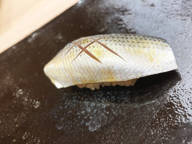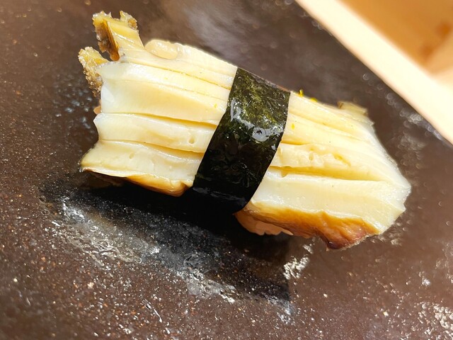 北陸で有名な根魚。我々の地元でもここまで脂が乗っている個体は中々お目に掛かれない。舌の上で溶けてなくなった。脂強めの魚はシャリとの融合が特に素晴らしかった。