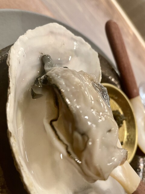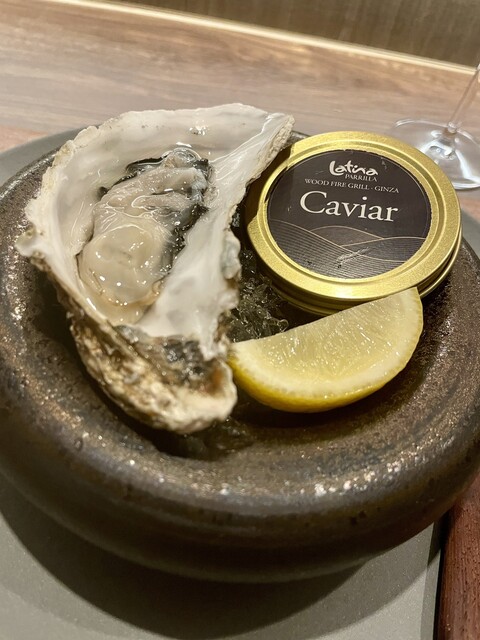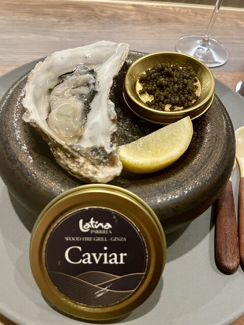 ・オシェトラ キャビア+大船渡産 生牡蠣 オセトラはスタージオンから獲れる大粒選りすぐりの高級キャビアですね、生ガキと一緒に食べると塩味とクリーミーさで幸せです