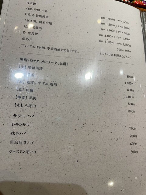 こぢんまりとした店内で、お店側の心遣いが行き届き、カウンター越しに伝わる職人技と、あまり肩ひじ張らず楽しめ、品よく進んでいく「おまかせコース」を堪能しました。