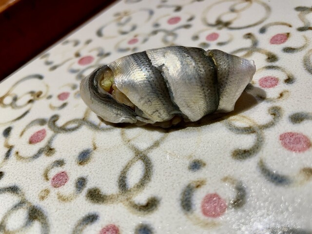 ・コハダ(新子) この時期ならではの旬ネタ。軽く締められていて、清涼感がある。