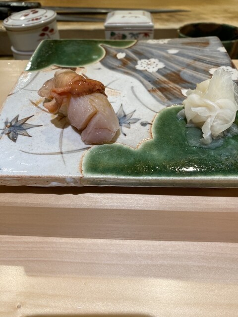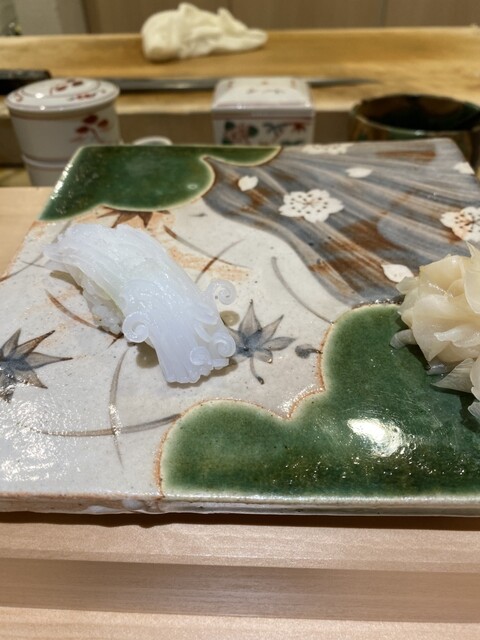 握りに移ってこのイカを見てください(写真9枚目)よく見ると包丁でイカの姿に形作られているではないですか!?お酒もビールから始まって日本酒へ移行、コースが終わる間際に上燗で一本入れてしまったので、もう少し何かつまもう、となり、私が大好きな光り物でつまみを作って頂きました。小肌を藤の花のように盛り付けてくださり、思わず「芸術的だ…」と漏らしてしまいました。芽ねぎの握りも珍しく、口の中にさっぱりとした緑の風味が広がります。