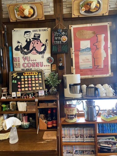 コーヒー(HILLSで結構美味しいです)セルフサービスで無料提供、それをちびちび飲みながら暫し待ちます。感心したのは皆さん結構細かなオプションを付けて注文しても厨房は全部覚えていらっしゃる事です。そして出てきましたよ、このボリューム、洋食詰め合わせとも形容すべき「トルコライス」店主が目の前でタルタルソースをかけてくださいます。