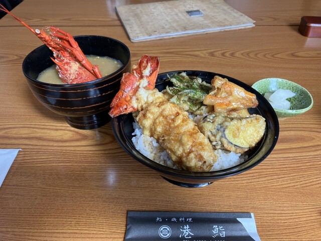 べっこう寿司と伊勢海老の天丼を頼みました。伊豆大島名産のべっこう寿司を頂きつつ、15~20分くらいして天丼が届きました。