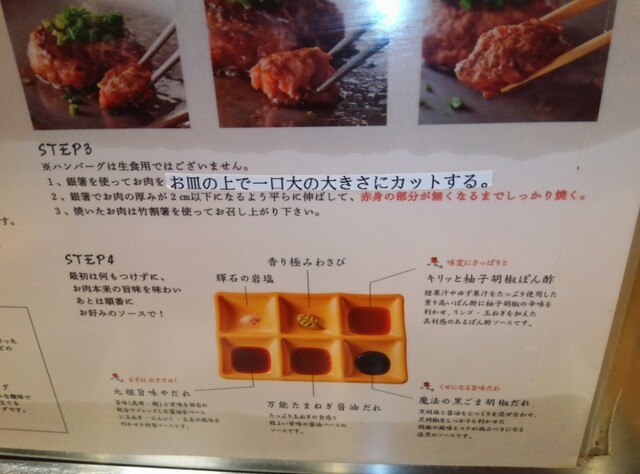 店員さんから赤い色が無くなるまで焼いて、お召し上がり下さいとの説明を受けます。