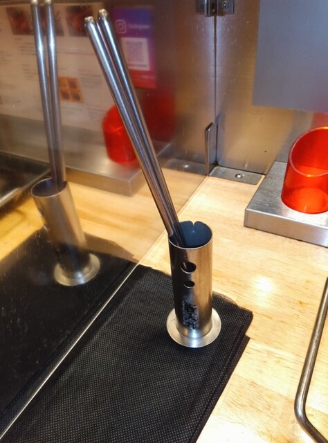 食べる時に使う割り箸は、カウンター席の引き出しの中に入っています。