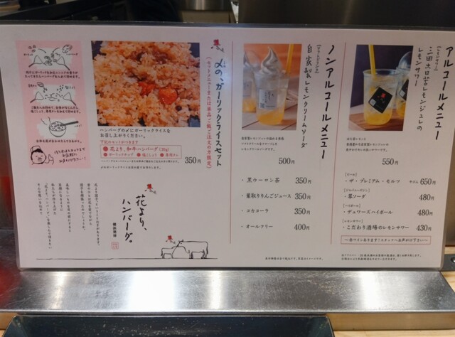 店員さんが、カウンターと鉄板の間の角皿の上に焼く前のハンバーグ(挽肉)をのせてくれます。