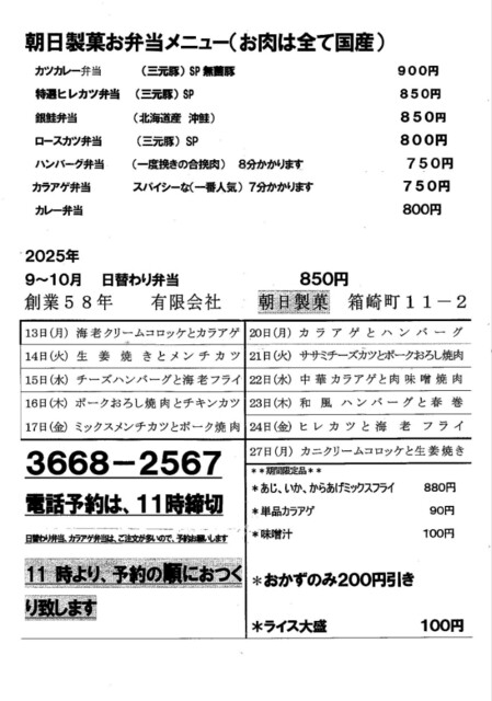 大型チェーン店の弁当屋さんなら、こんなサービスは、無いと思われます。