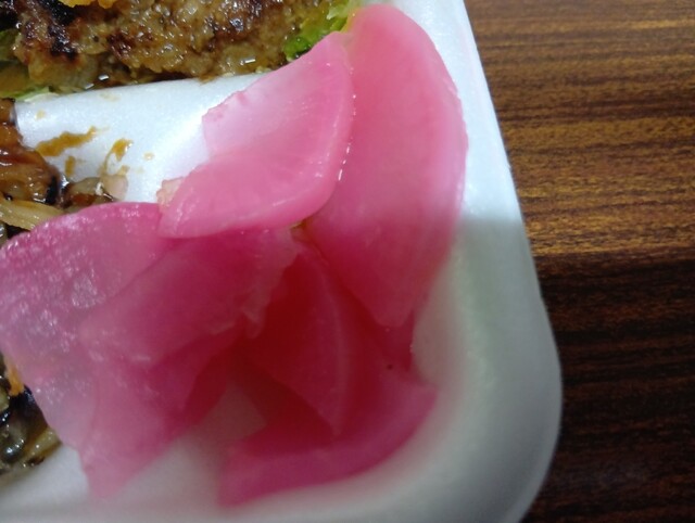 ハンバーグの上におろしポン酢(醤油か?)が、たっぷりとのせられています。