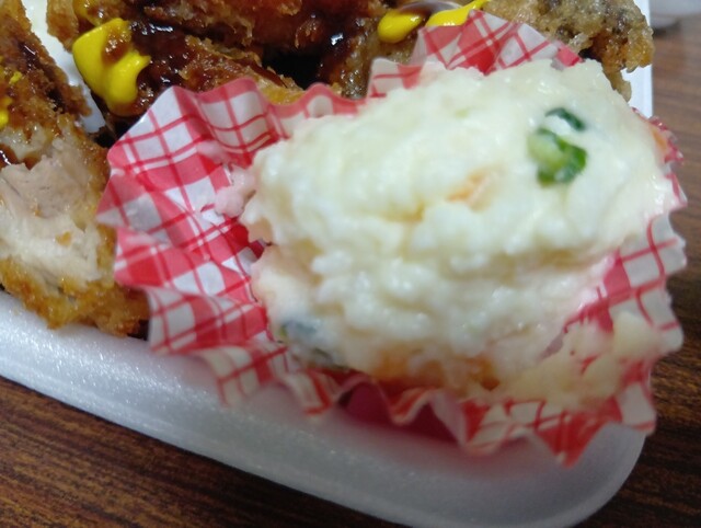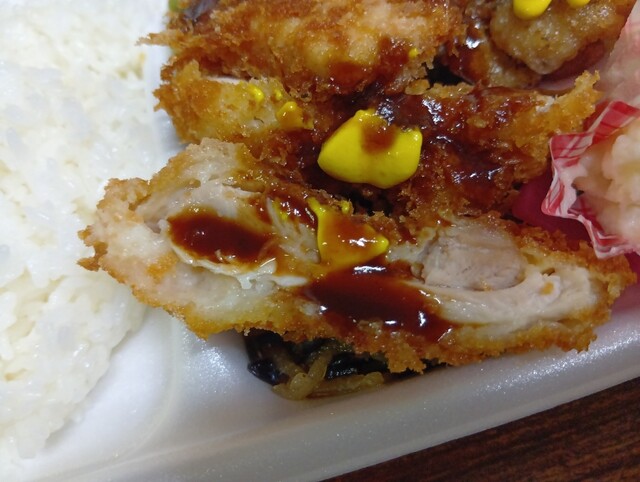 チキンカツが、今日は小さめだったそうで、唐揚げ1ヶととんかつのヒレカツ1ヶを入れて下さいました。