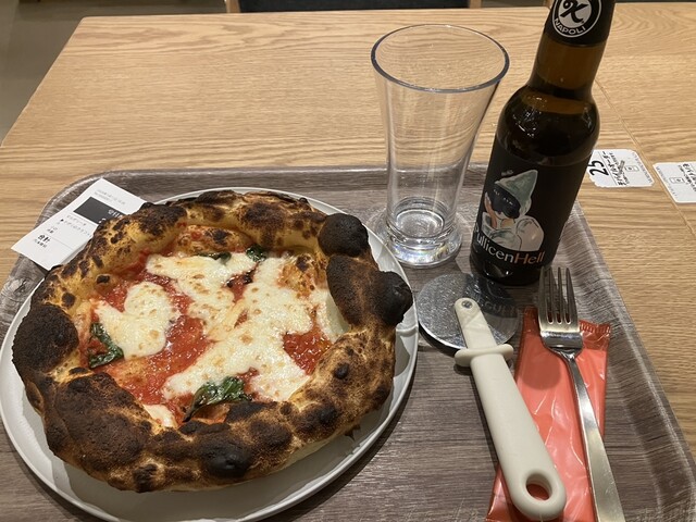 食べログ日本一のお店が出してる支店です。杜の街グレースのフードコートにあります。マルゲリータとクラフトビールを注文しました。チーズやフレッシュなトマトも勿論美味しいですが、薄いながらももっちりとした生地がかなり美味しいです。土曜日の夜に行きましたが、並ばずに食べることができました。