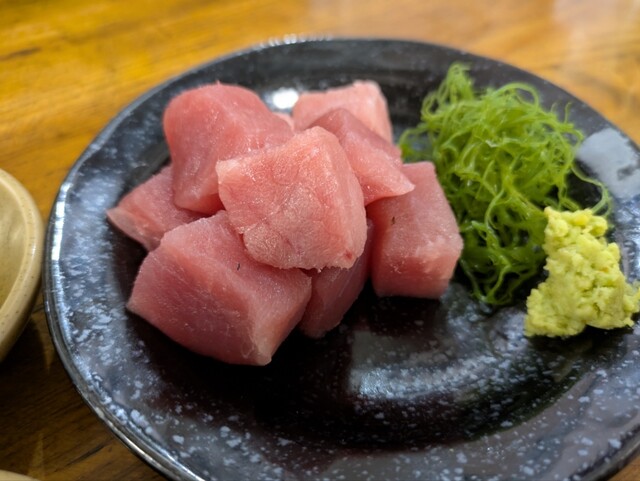 アジフライはふわふわでマグロぶつは味が濃く朝ビールにも最高ですね!