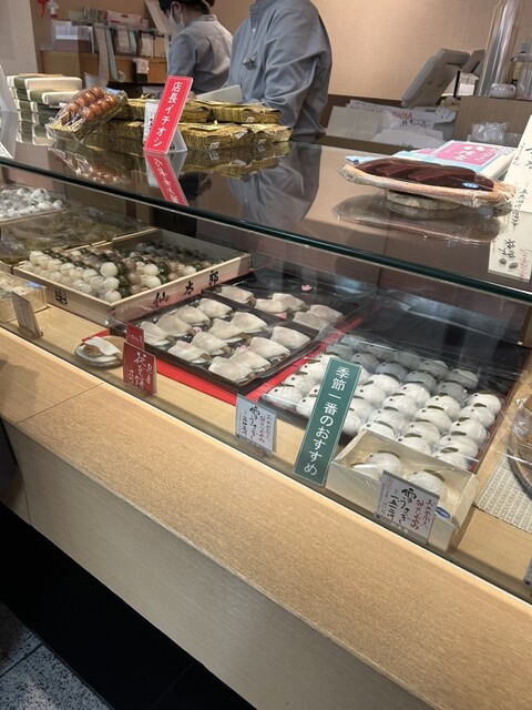 取り敢えず、ざっと右から順に見ていったのですが、気づいたら全部買いそうな程、美味しそうなので、食べたことのない、青紫蘇海苔のおはぎ(220円税抜)と花びら餅(450円税抜)を買いましたよ。