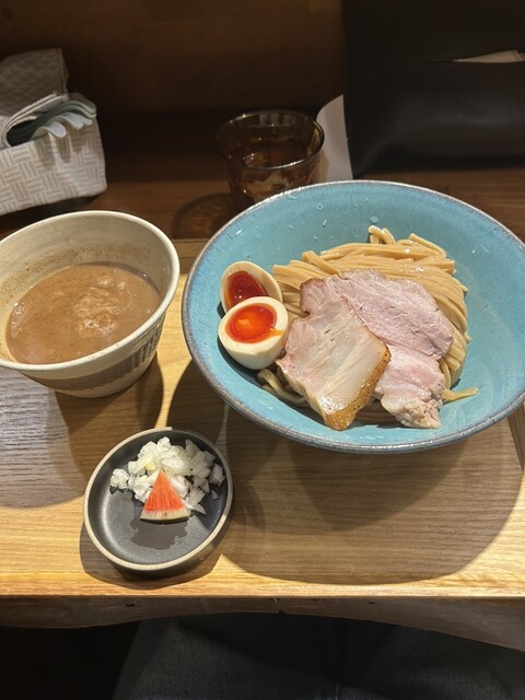 まるできしめんのようなコシのある麺の魚介つけ麺