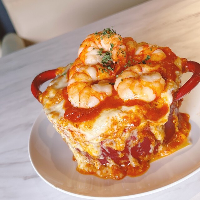 エビボルケーノパスタ、エビがゴロゴロ入っててびっくりじゃ