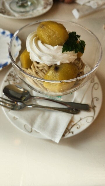 クリームは甘すぎず、お酒が微量に入ったモンブランペーストと絶妙なミックス。