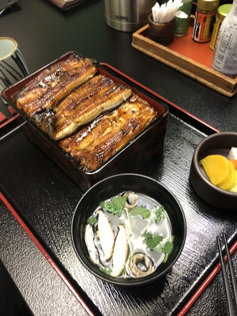 案内されて広々とした畳の個室に通されます。椅子席なのが嬉しいです。それぞれ鰻二枚の愛鷹山、鰻三枚の箱根山、白焼、肝吸い、ノンアルコールビールをお願いします。鰻の提供までは30分程度で、鰻屋としては程良い間合いです。鰻は蒸し具合も焼き具合も良く、鰻タレはやや濃いめで、とても美味しく頂きました。