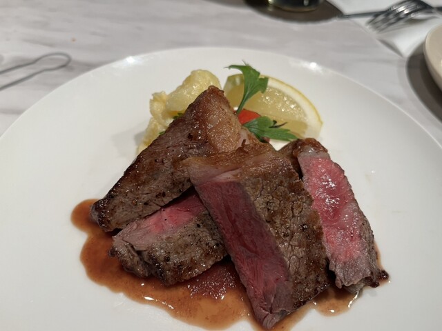サラダ、ステーキ、ピザなどを注文したが、どれもとても美味しかった。