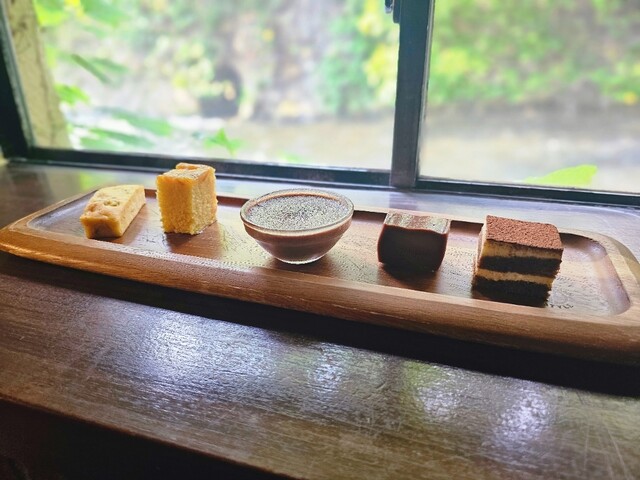 川を眺めながら優雅にお菓子をいただく