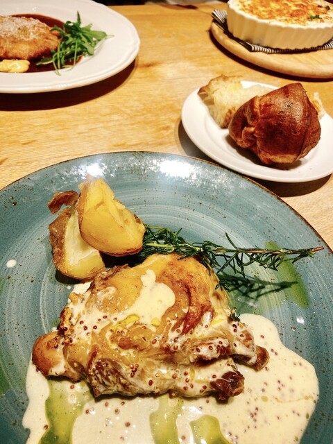自家製パンは、バゲット、フォカッチャ、ポップオーバー。