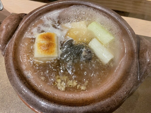 ◎すっぽん鍋が吸い物の順番でドンと登場。スープには臭みが全く無く、黄色いすっぽん独特の脂が浮き上がり、これがまた優勝です。細かい透明の脂も浮かんでたまらないです。身はプルプルでとても身体に沁み渡りました。