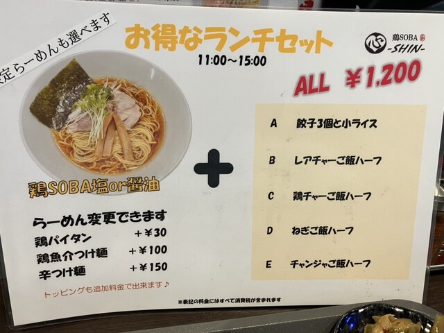 こちらはスープがつきますが、+200円で醤油ラーメンに変更できます。