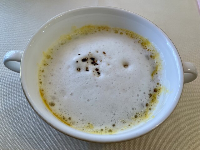 まずカボチャのポタージュ。写しそびれましたがパンも美味しいですね。メインは悩んだ末、豚肩ロース肉のソテーをお願いしました。ソースはシャルキティエール。爽やかな酸味があり食欲をそそります。そのソースが厚めで柔らかいお肉を包んで口の中を埋めていきます。量も僕には十分すぎるほど。豚ロースは2ピースありましたが、肉種とあつらえが異なりました。ひょっとしてひとつが塩締めなのかな。噛み応えや肉汁の広がりが違います。ま、あくまで感想です。どちらも美味しいです。