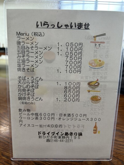 昨日に引き続き孫の子守りです。小上がり席のある「あさり浜」さんにしました。開店11:00を5分ほど過ぎての来店でした。すでに店内のテーブル席はいっぱいで、奥の小上がり席が空いていました。ラッキーでした。私は「エビ天丼1400円」を、妻は「塩ラーメン700円」を頼みました。