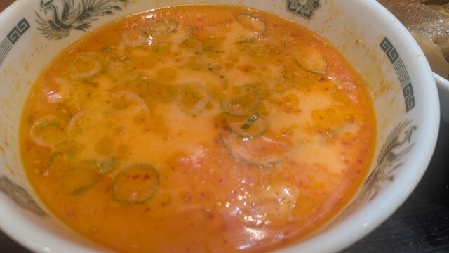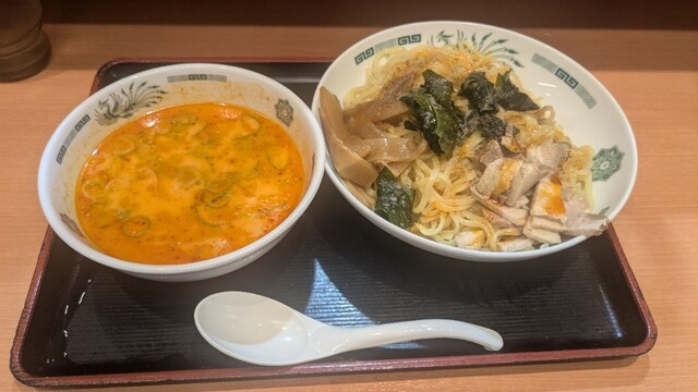 熱盛り否定派。熱々スープに冷たい麺を潜らせ、熱さと冷たさと、その中間の温さを愉しむのがつけ麺の醍醐味だろう?というのが武丸の信条。