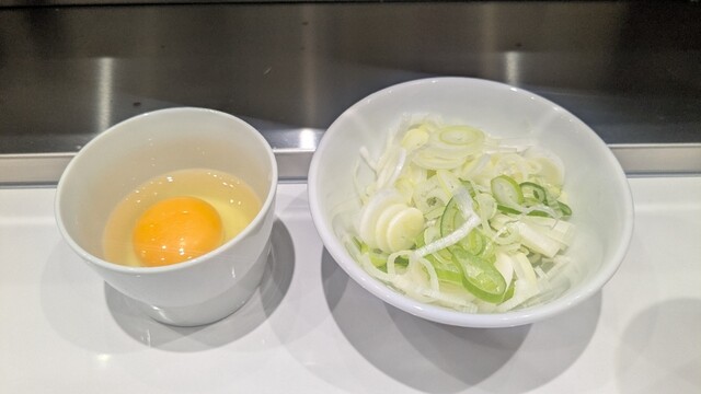とりあえず初見ゆえ冒険は禁物ということで、大盛りにねぎと生卵をトッピン。