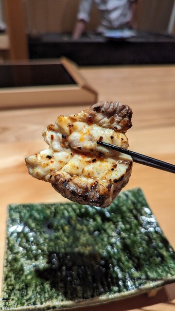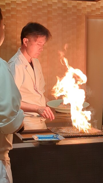 焼きふぐは炭火で焼くことで香ばしさが増す、またふぐの身が分厚いのでここでしか味わえない食感。