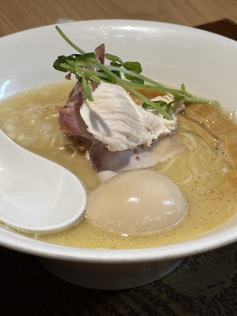 二人で訪問、限定のクリームサーモンと、定番の深み鶏を注文。サーモンは具として使われているわけではないけど、看板に偽り無しで、食欲をそそるサーモンの香りが素晴らしい。こちらのラーメンは、どれも香りが素晴らしいように思う。絶妙なバランスでスープに風味をきかせる天才!