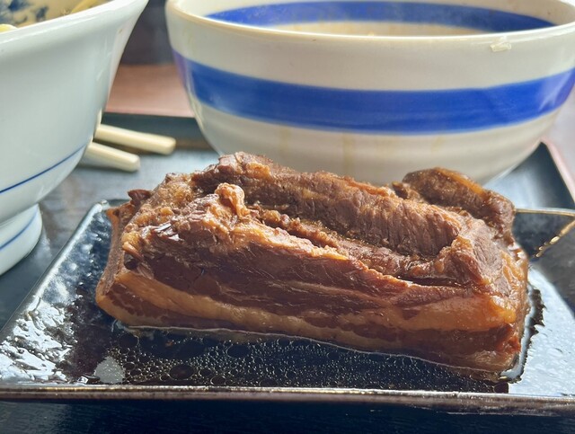 辛しつけ麺は辛いもの好きにはハマる美味しさです。角煮は味が染み染みトロトロで、家族で分け合いますがいつも争奪戦になります。