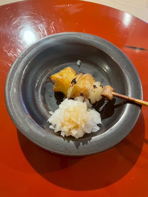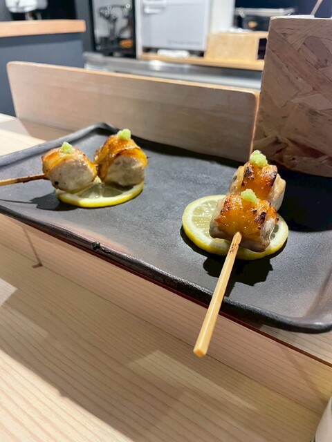 おまかせコース5500円➕ドリンクを注文しました。私はじゃばらサワーを注文しました。店主さんが目の前で焼鳥を焼いてくれます。換気扇のパワーがすごくて店内は全く煙たくなかったです。焼鳥屋さんに行くのは初めてだったのですが、1品目にでてきたむね肉の美味しさに感動しました。出てくる焼鳥が全て美味しくて、焼いている所を見ることができたのも良かったですプロが焼いた焼鳥はこんなに美味しいんだなと思いました。