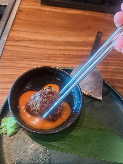 平日限定のラムバーグを食べるため、開店時刻に突入した。おしゃれなコの字のカウンターで、行く前から決めていたメニューを選択。