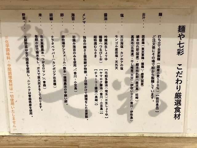 麺や 七彩(八丁堀、宝町、茅場町/ラーメン、つけ麺)