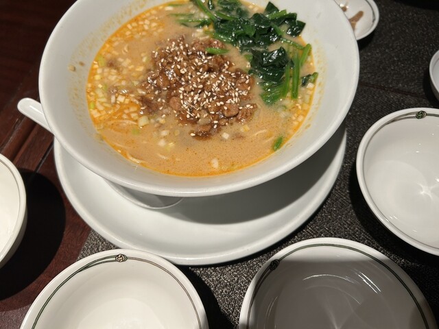 どうしても、担々麺も食べたくて、始める前に、追加オーダーしておいた。チャーハンのあとにサーブされ、4人でとりわけた、