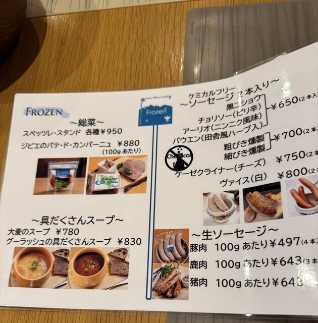 スープ カレー味のソーセージ 自家製ハムなどなど