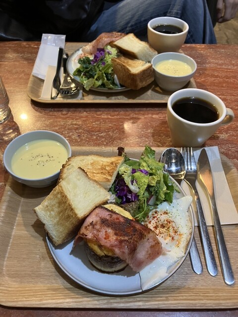 週末の朝9時ごろにモーニングをいただきに行きました。モーニングプレートが3種類と土日祝日限定のプレートが一つありましたが、限定にひかれて土日祝のアッシュパルマンティエプレートにしました。フランス料理を手軽に美味しくいただけて良い朝でした。