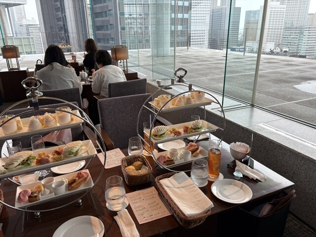 新宿駅南口から陸橋渡ってすぐにあるホテルの最上階で、眺めは最高でした。その日は雨で遠くまでは見えなかったけど晴れたら最高なんだろうな。アフタヌーンティーでサンドやスコーン、ケーキなど、はじめにシャンパンもついてました。美味しかったです。ホテルなのでサービスも丁寧で良かったです