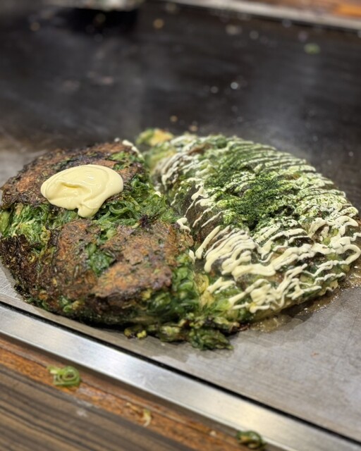 注文する生地が見えないほどのネギ焼き