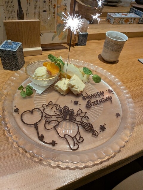 バースデープレートを頼んどいたけど、チョコのプーさんの絵が上手い!!