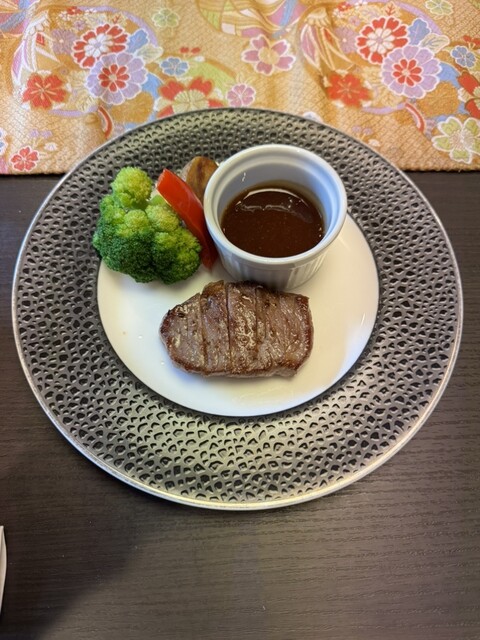 さすがのホテルなので、海老&蟹の甲殻類アレルギーのため、伊勢海老鬼殻焼きから銀だらの照り焼きへ変更と、全て塩分控えめにして頂き、どれも美味しく大満足!