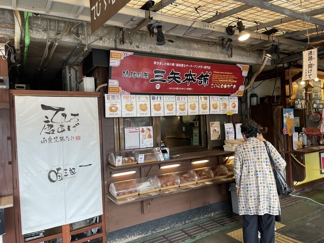 沖縄旅行に宿泊した恩納村のホテルモントレ沖縄から3キロぐらいの場所にあるおんなの駅なかいくい市場内にあるサーターアンダギーのお店三矢本舗。サーターアンダギーを揚げる香ばしい匂いに誘われてプレーンを5個買ったが、揚げたてもあってかすごく香ばしくホクホクでその後追加で10個購入。揚げたては別格。プレーン以外も美味しいとの事。