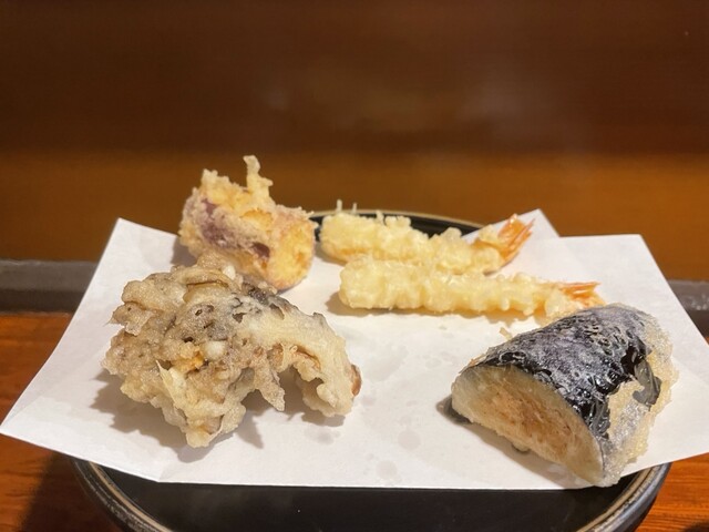 板さんが目の前で揚げてくれるので、目にも美味しく頂きました。