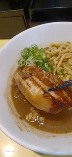 今回 注文した 1品は濃厚ラーメン 炭焼きチャーシュー 160g 。程なくして提供された一杯は太麺に、