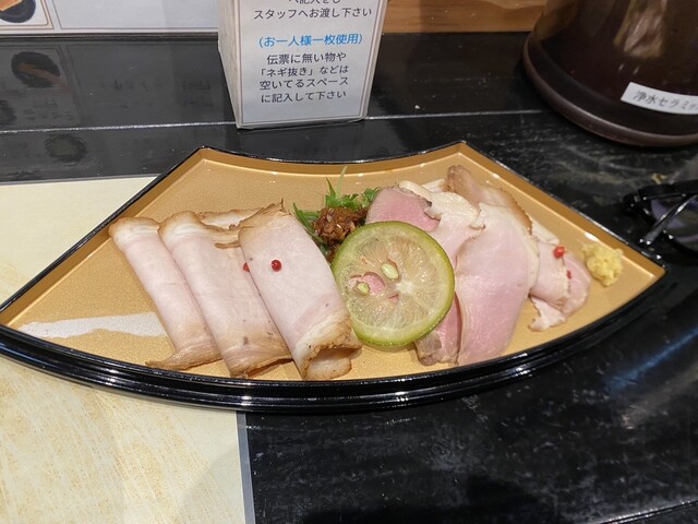今まで食べた生姜の入ったラーメンの中では1番ですね。むしろ淡麗より好きかもしれません。レベルの高いスープに生姜の味わいが広がりたまらないです。いつまでも飲めてしまいそう。麺も生姜醤油に合っていてとても良いです。味玉とネギとチャーシューをトッピングしてますが、なしのノーマルの生姜醤油のコストは900円と安いです。ちなみにトッピングのチャーシューはレアで3種あり、ジューシーで美味しかったです。スープ、麺、具のバランスがよく考えてあり、至高とも言えます。