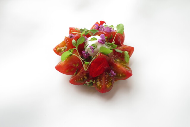3品目:「慰め」は最近行っていない南フランスを忍んで。暖かいプチトマトと貝がマッチして非常に美味しい。