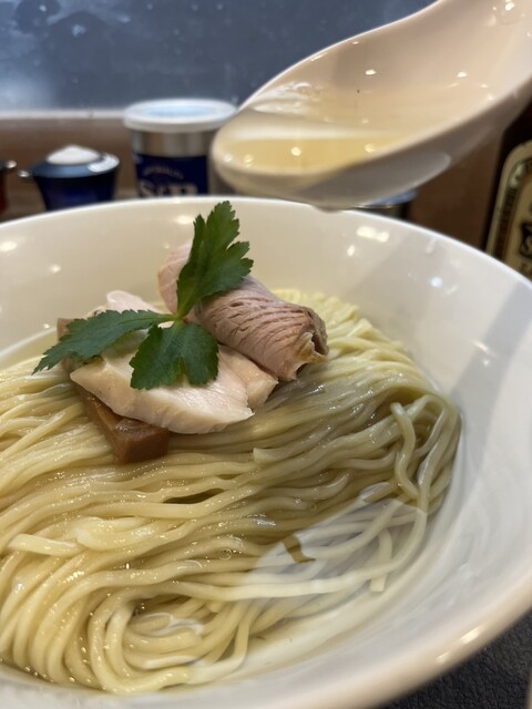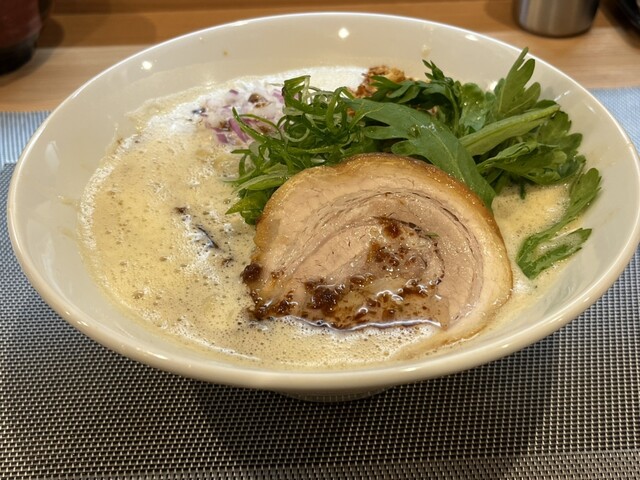 トピは、吊るしチャーシュー、鶏チャーシュー、九条葱、メンマ…全てが特選