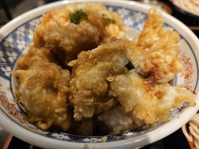 牡蠣の天丼セット もりそば大盛